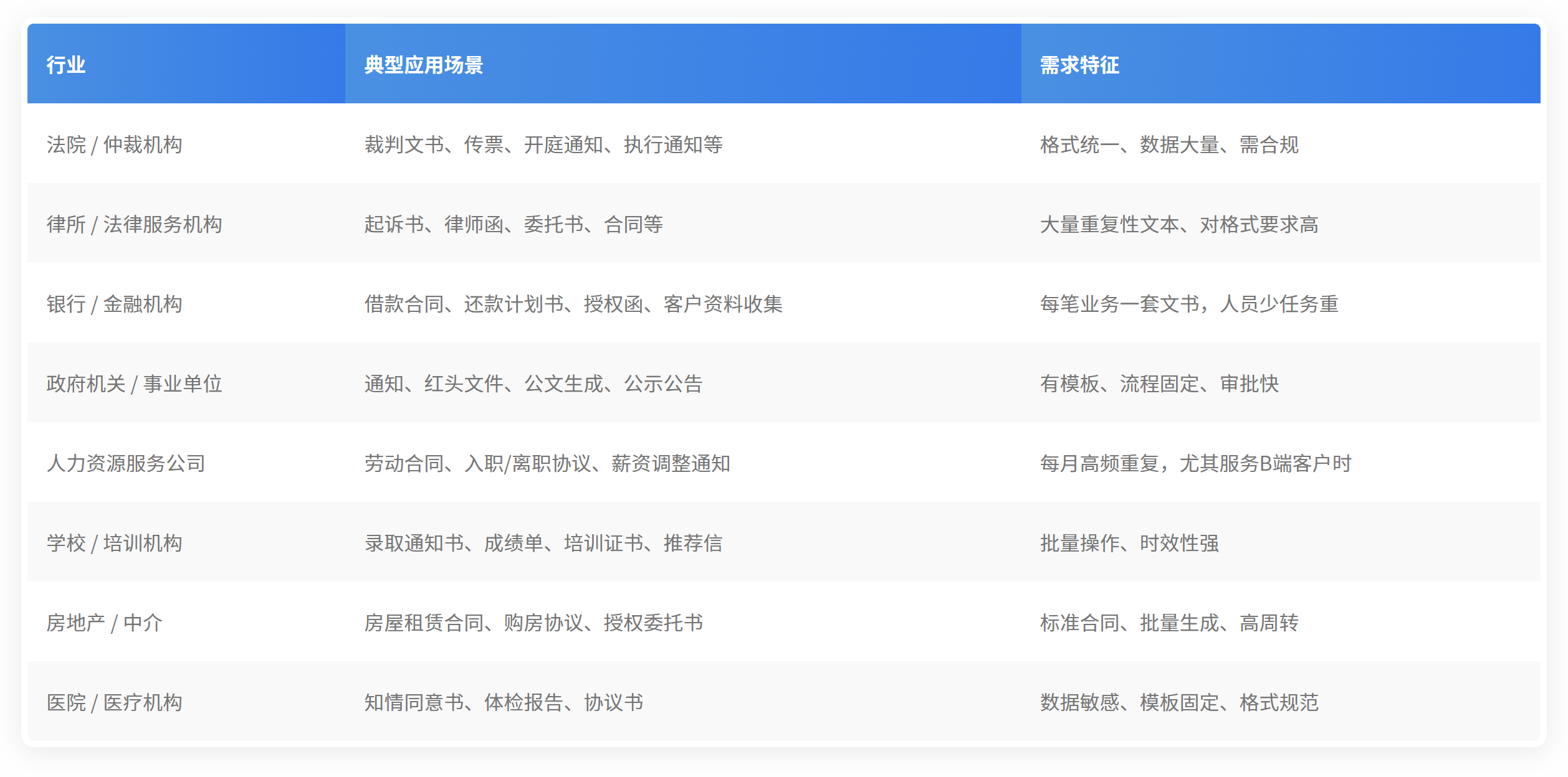 适用于银行/律所/法院/学校/医院/房产/人力等文档密集型行业