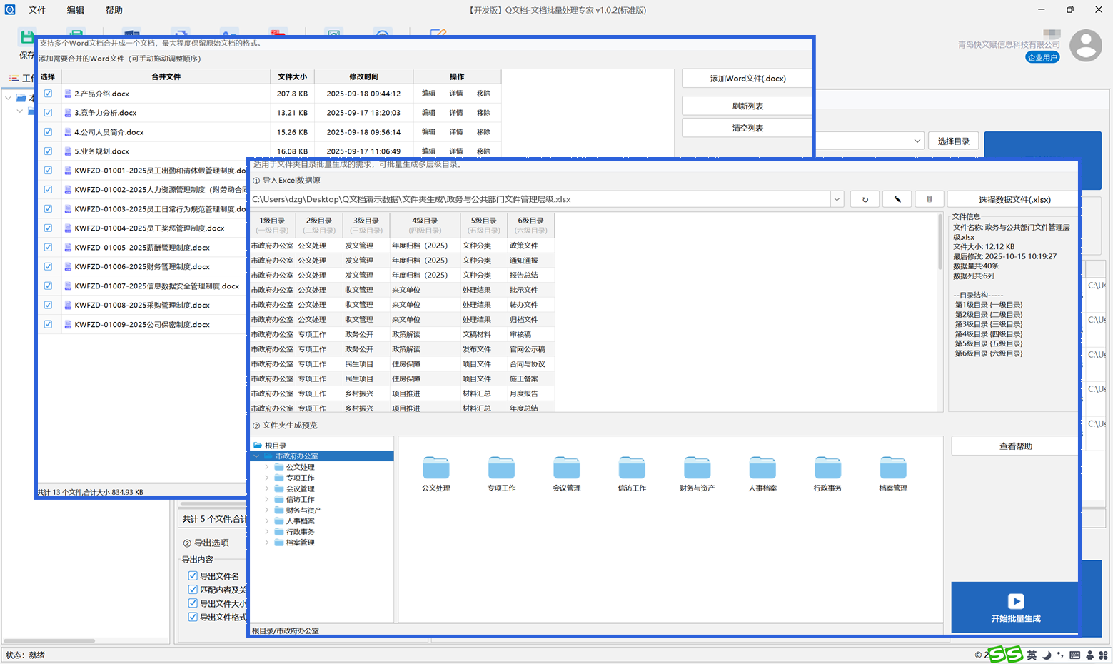 Q文档客户端还支持文档合并、文件夹生成、文件清单盘点、文件内容深度搜索等特色功能。