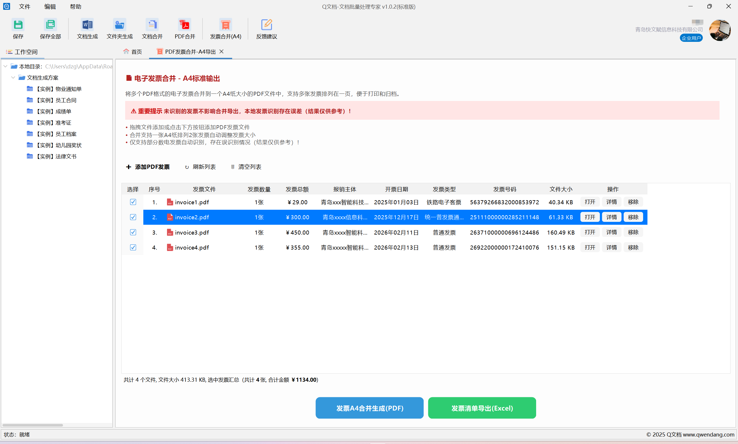 - 自动将多份电子发票 PDF 合并为适合报销打印的文件